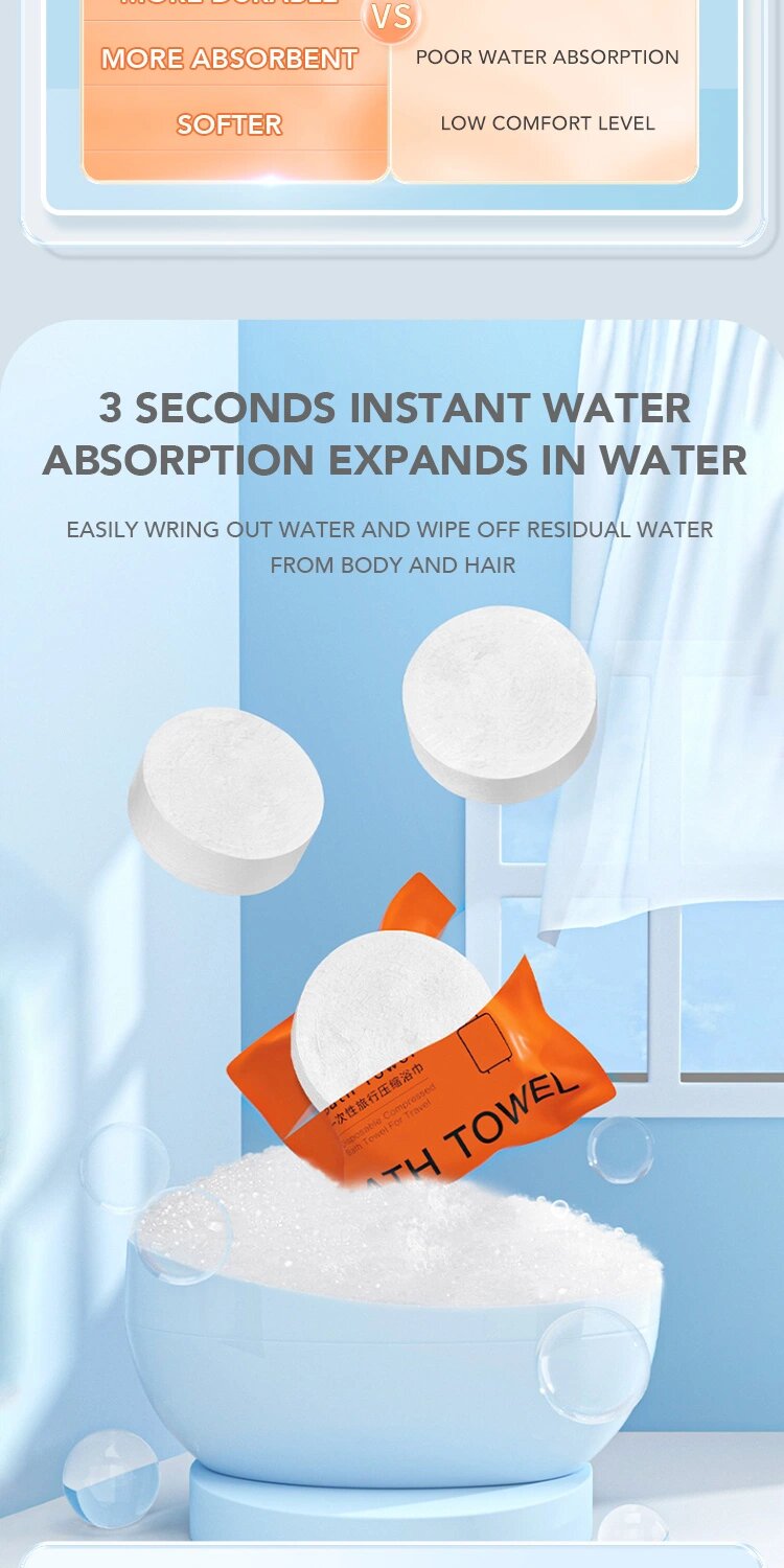 •112 تقييم•تم بيع +598Serviettes de bain compressées épaisses en coton non tissé Pour voyages ou déplacement