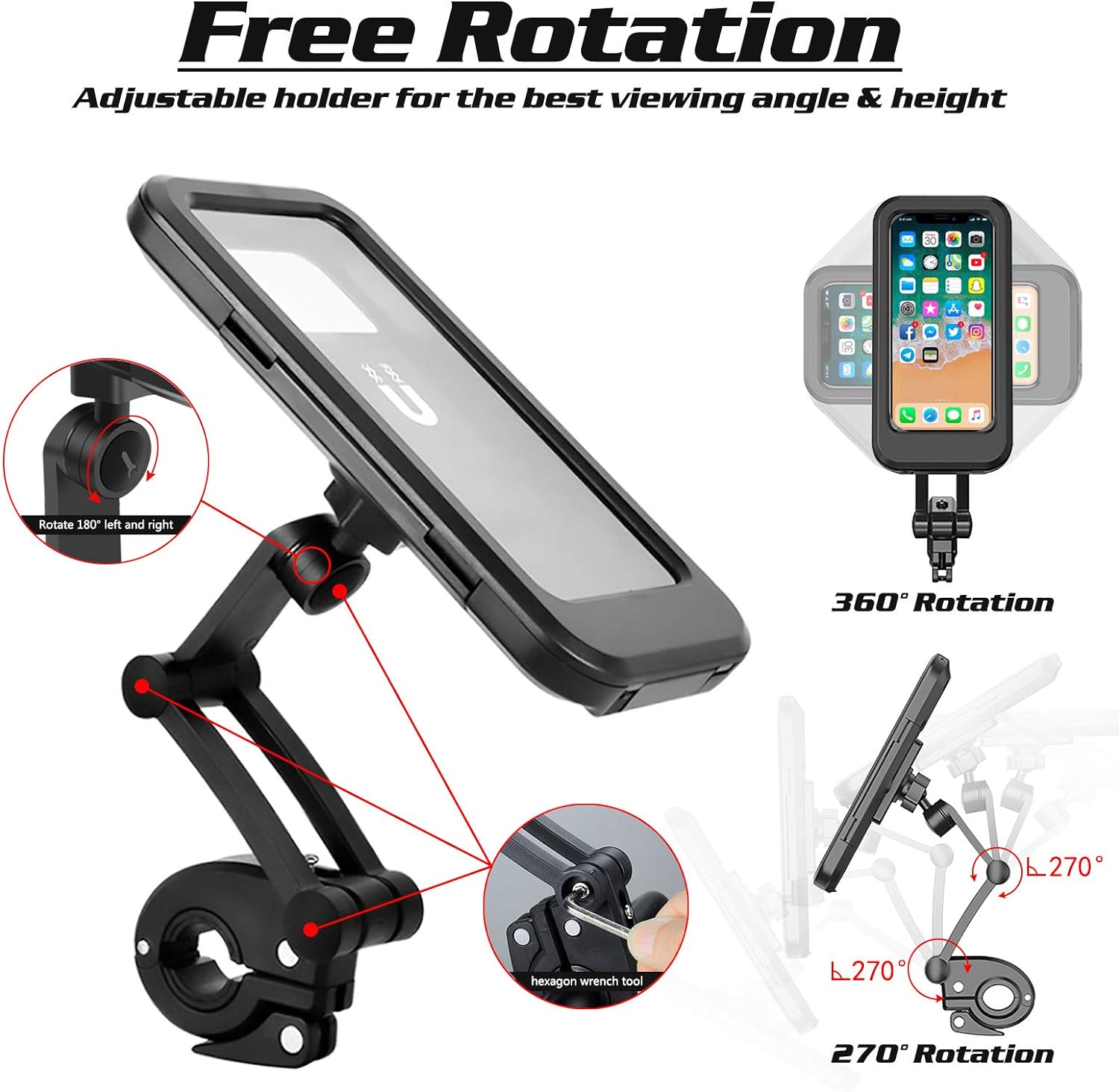 Support de téléphone portable étanche pour vélo moto réglable à 360 °