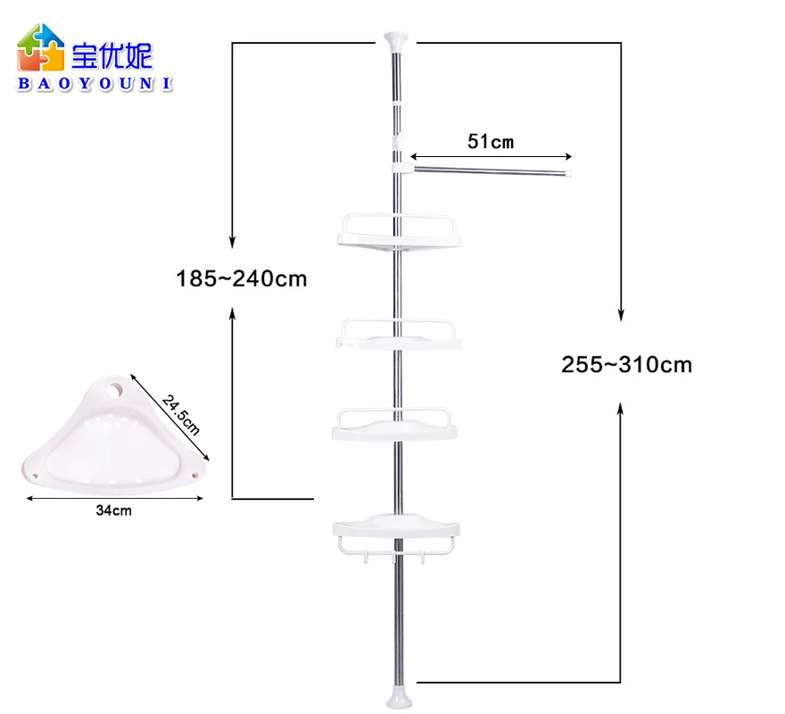 متانة فائقة وتوفير للمساحة: مصنوع من الفولاذ المقاوم للصدأ (ستانلس ستيل 430) والبلاستيك المعزز، مما يضمن مقاومته التامة للصدأ والرطوبة. تصميمه المثلثي يستغل الزوايا بذكاء لتوفير أكبر مساحة ممكنة.