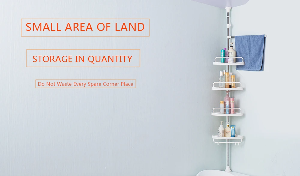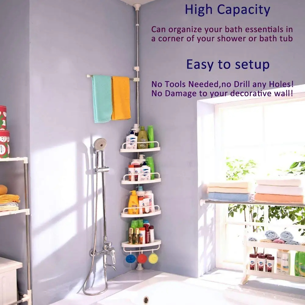 سعة تخزين ضخمة: يحتوي على 4 أرفف واسعة وعميقة يمكن تعديل ارتفاعها حسب رغبتك، مما يوفر مساحة كافية للشامبو، الصابون، وجميع مستلزمات العناية الشخصية.